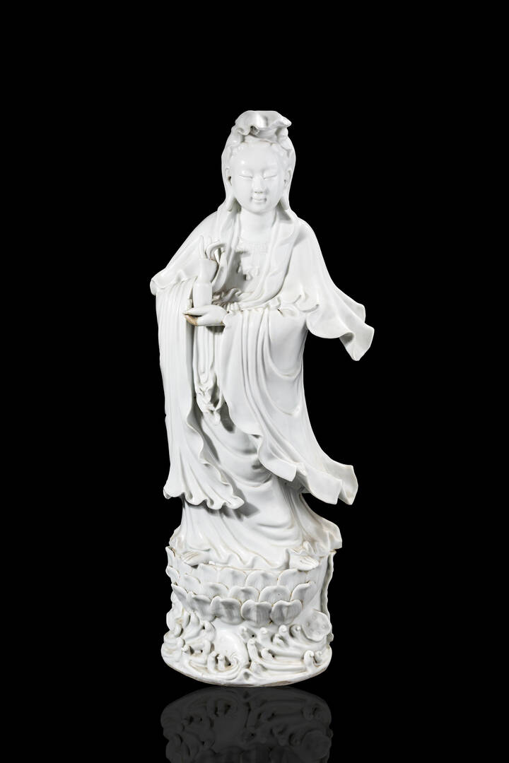 Guanyin in porcellana Blanc de Chine. Cina, Repubblica XX sec.