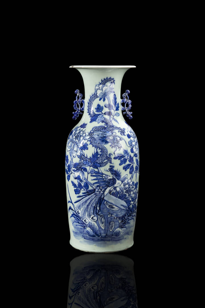 Vaso in porcellana decorato con drago blu su fondo celadon, Cina dinastia Qing XIX Sec.