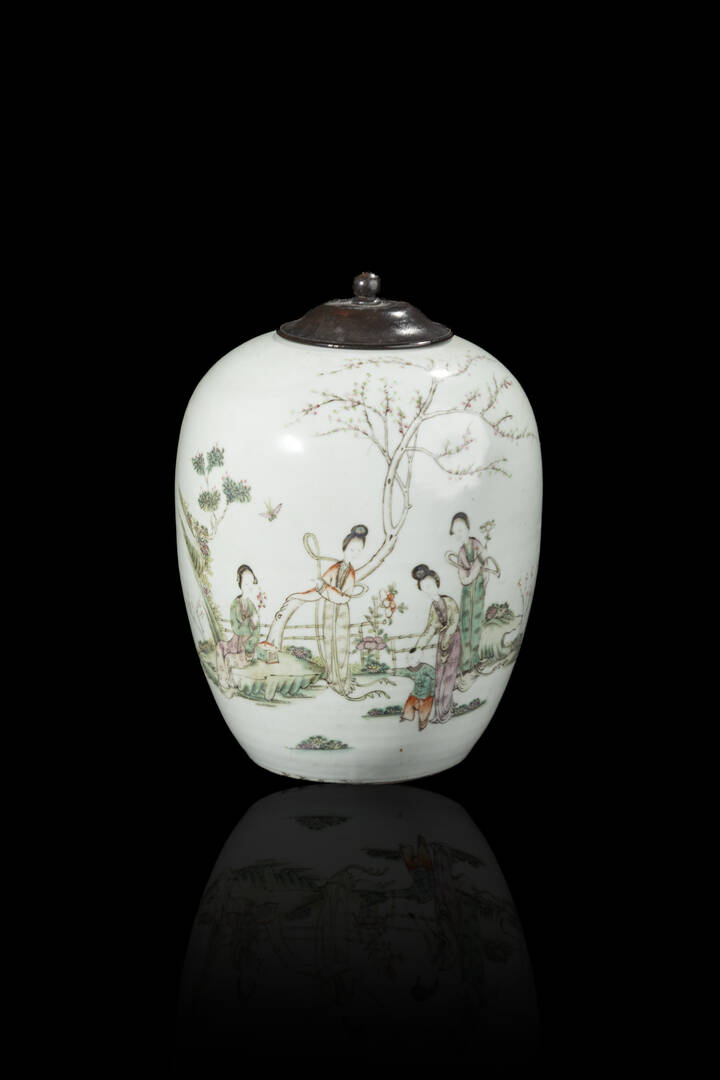 Vaso in porcellana Famiglia Rosa decorato con personaggi in giardina, Cina dinastia Qing XIX Sec.