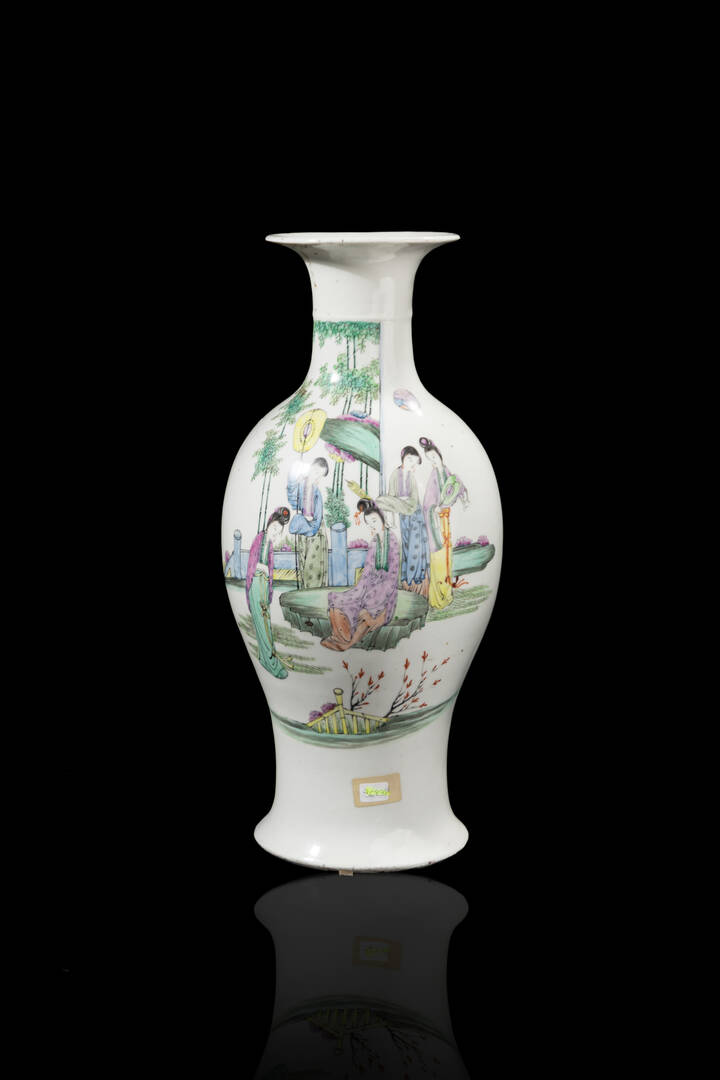 Vaso in porcellana Famiglia Rosa decorato con personaggi in giardino e iscrizioni, Cina, Dinastia Qing XIX Sec.
