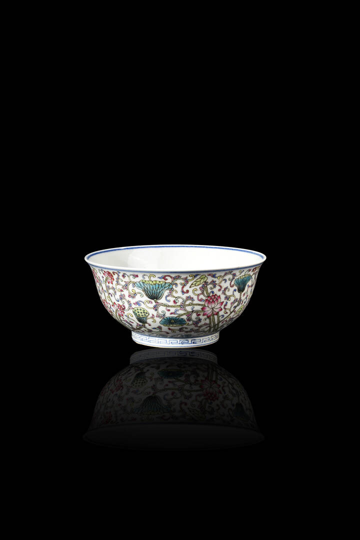 Ciotola in porcellana Famiglia Rosa con decori floreali. Cina, Repubblica XX sec.