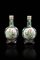 Coppia di vasi in porcellana Famiglia Verde decorati con peonie e uccelli entro riserve. Con basi lignee. Cina, Repubblica XX sec.