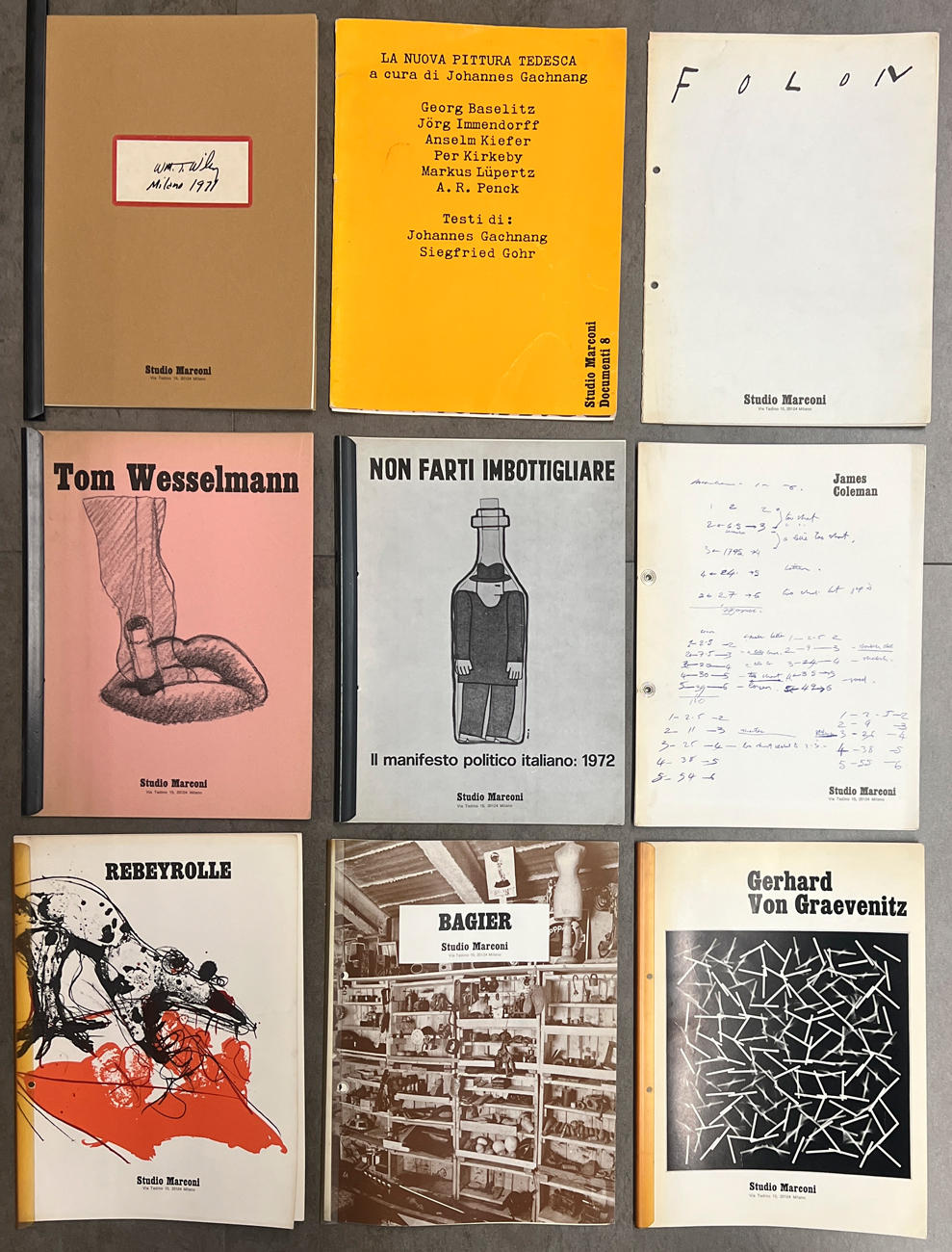 STUDIO MARCONI, MILANO - Lotto unico di 8 cataloghi e una locandina editi dalla Galleria