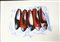 Mario Schifano, "Scarpe" Serigrafia materica a smalto su carta, Dim. 50X70, Al fronte: esemplare 111/199 in basso a sinistra, timbrato a secco "Mario Schifano" e firmato in basso a destra, Senza cornice
