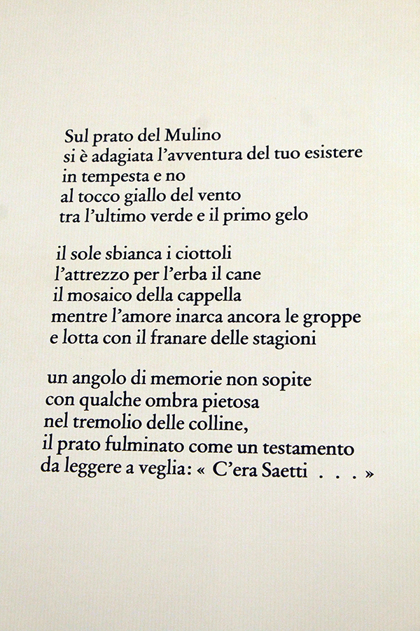 BRUNO SAETTI, "Sul prato del mulino", anni 80' circa , litografia incisa su cartoncino , cm 70x50, Al fronte: firmato in basso a destra, esemplare in basso a sinistra, Tiratura : 122/125. In basso a sinistra centrale timbro e uno in basso a destra. Opera con cofanetto, all'interno della cartella, si trova una poesia .