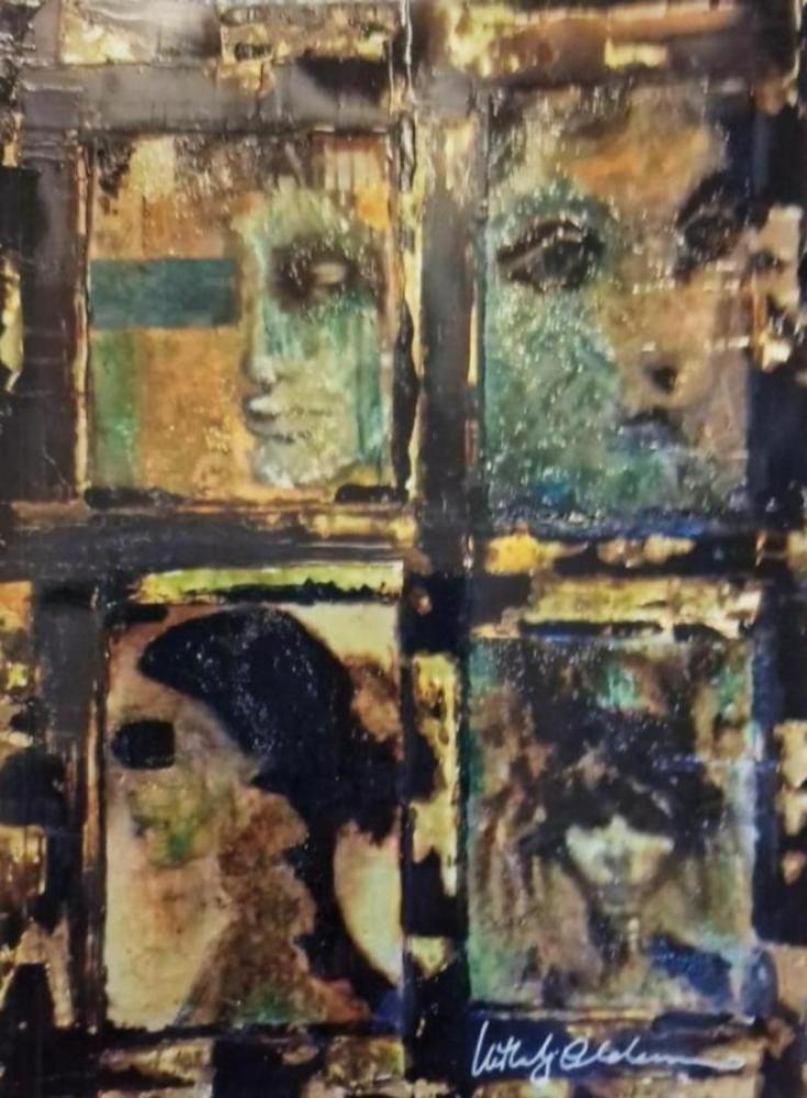 bricolage e acrilico con tecnica mista e