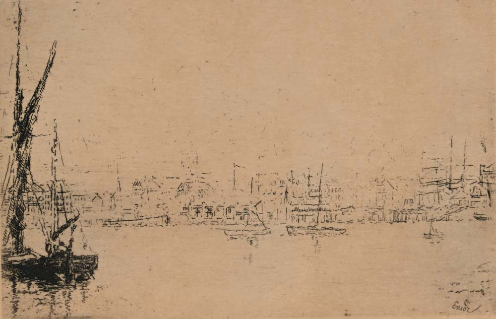 James Ensor (Ostenda 1860 - Ostenda 1949) Vue du port d'Ostende 1888 Firma in...