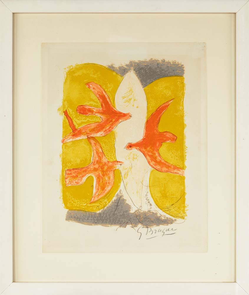 Descente Aux Enfers Firma a matita "G. Braque". Timbro a secco della Libreria Antiquaria Prandi Reggio Emilia Litografia cm 32,5x26 - in cornice cm 46x39
