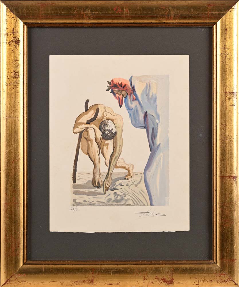 Dante nella divina commedia Firma e numerazione "Dalì 23/40" Litografia cm 33,5x26 - in cornice cm 53x44