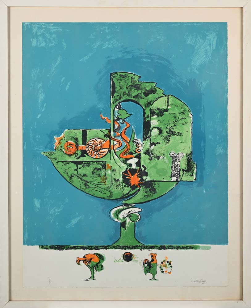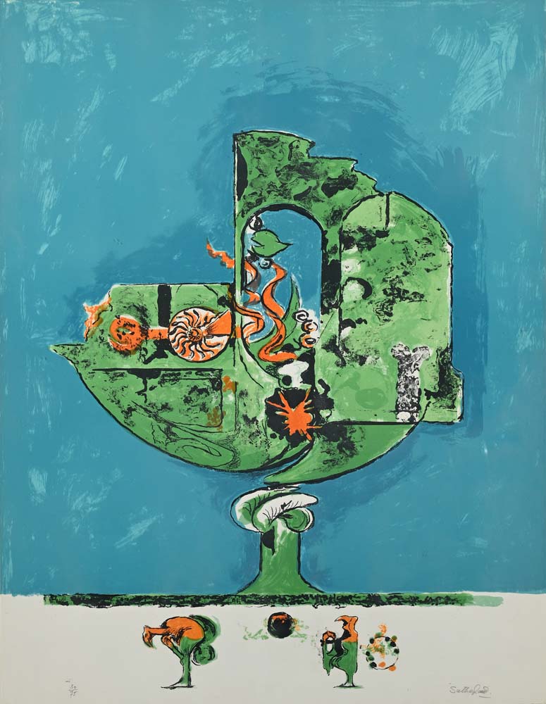 Flammes dans une forme de roche I 1975 Firma e numerazione "Sutherland 30/75" Litografia cm64,5x50 - in cornice cm 76x61