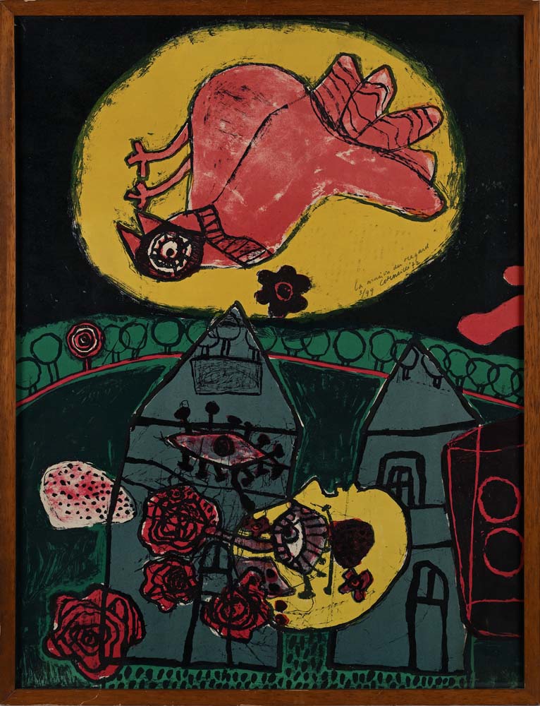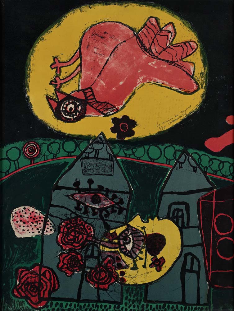 Maison du regard 1972 Firma, titolo, numerazione e data "La Maison du regard, 3/99, Corneille '72" Litografia cm 66x50 - in cornice cm 68x52