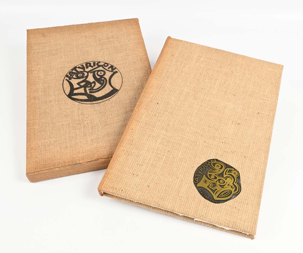 Satyricon 1969 Raffinata edizione numerata 30/100 e riservata ad personame per "Carlo Ceschi" contenente una incisione originale cm 50x33, firmata e numerata "Mastroianni 30/100". L'edizione completa di cofanetto rigido misura cm 52x35 Libro d'artista