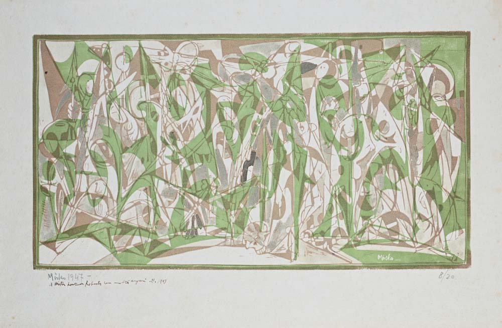 Il Golgota 1947 Firma in lastra, firma a matita in basso a sinistra e dedica ad personam 1948; esemplare 8/20 Xilografia a due legni lastra cm 23,5x43,5 - foglio cm 34x51,5