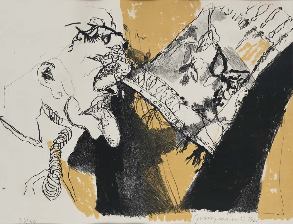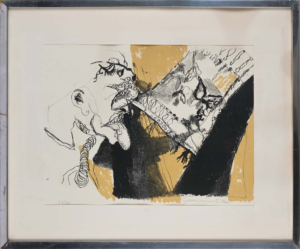 Senza titolo 1962 Firma, data e numerazione "Gianquinto 1962, 26/30" Litografia lastra cm 44x55 - in cornice cm 67x79