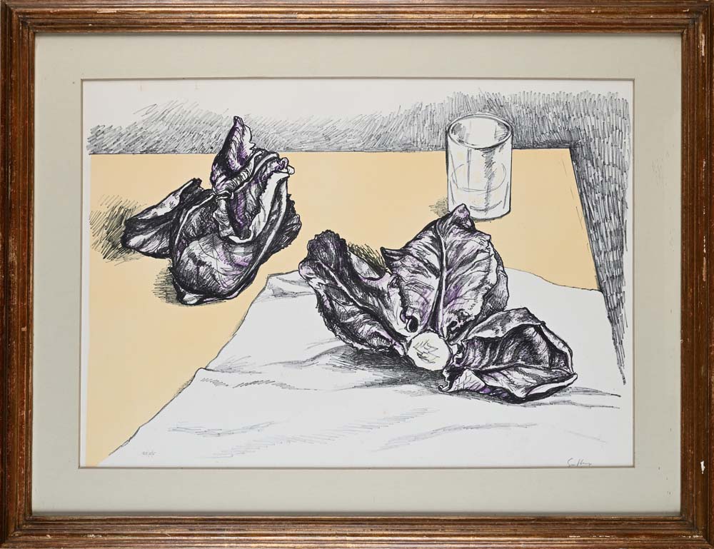 Natura morta con radicchio e bicchiere Firma e numerazione "Guttuso, 89/175" Litografia cm 50x70 - in cornice cm 67x87