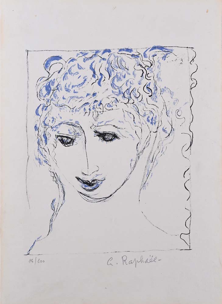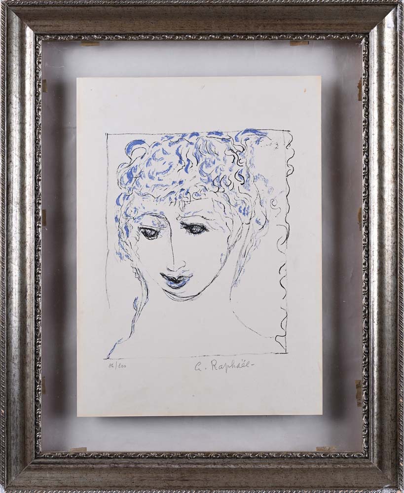 Ritratto Firma e numerazione "A. Raphael 84/100" Litografia cm 45x32 - in cornice cm 64x52