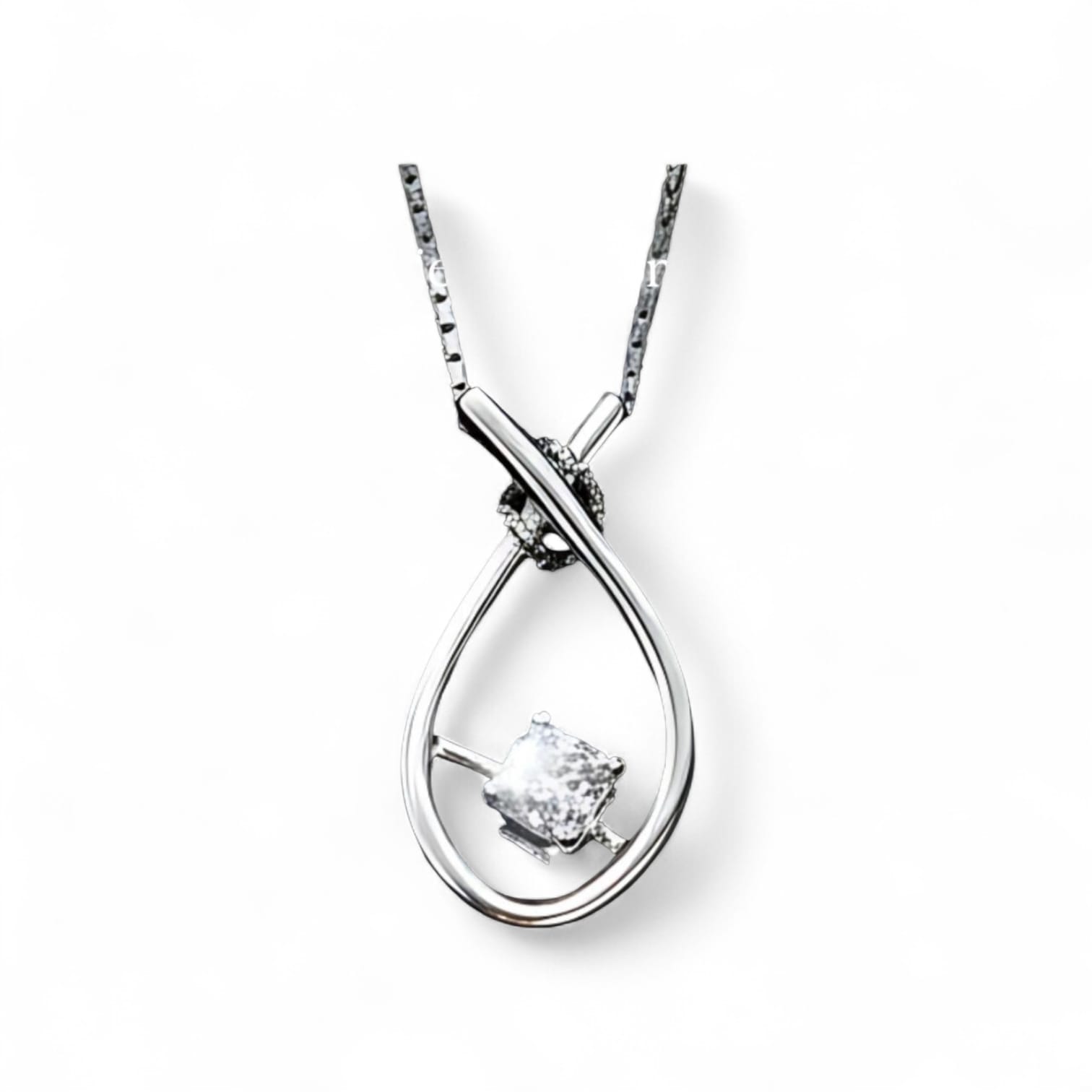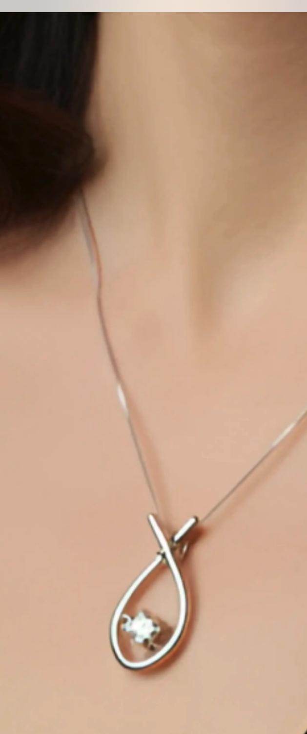 Collana con pendente a goccia in oro bianco 18 carati, peso 2,31 gr. Diamante naturale taglio brillante carati totali: 0,20 ct