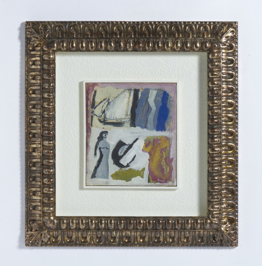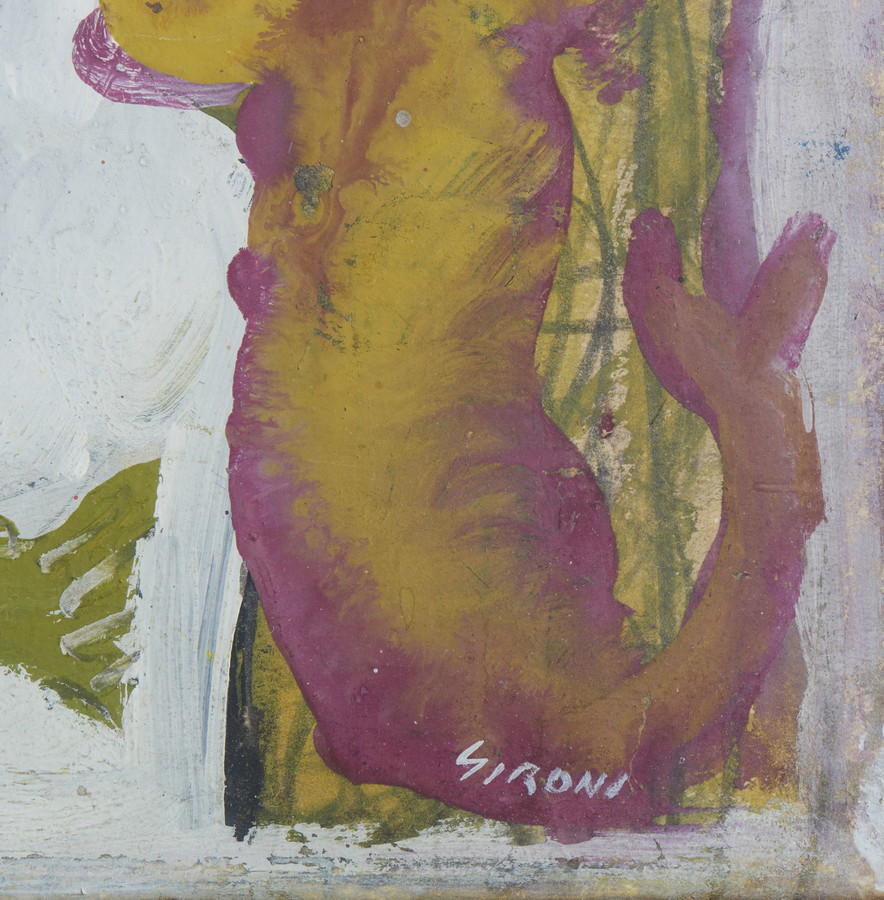 SIRONI MARIO (1885 - 1961) COMPOSIZIONE, (1948 ca). tempera, matita e matita grassa su carta apllicata su tela. Cm 21,00 x 23,70. firma apocrifa