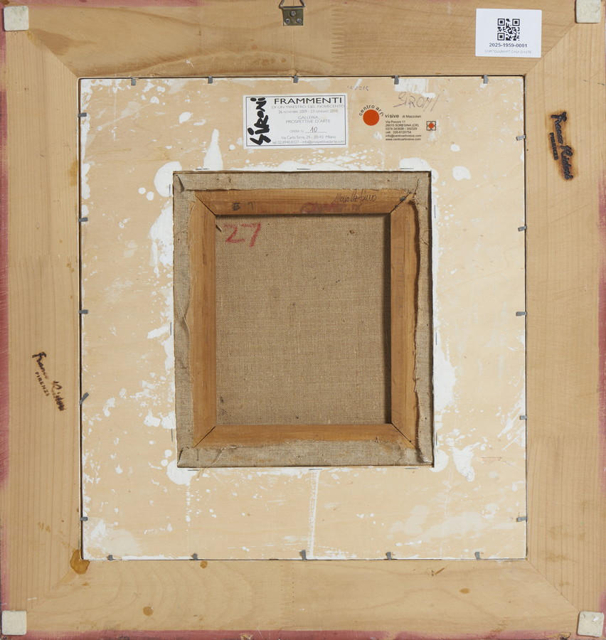 L'opera è accompagnata da certificato di archiviazione dell'Associazione per il patrocinio e la promozione della figura e dell'opera di Mario Sironi e da autentica di Francesco Meloni su fotografia