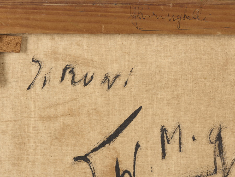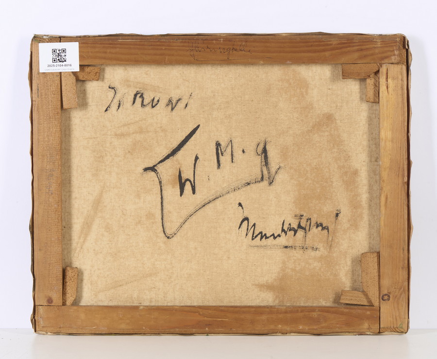 L'opera è accompagnata da certificato di archiviazione dell'Associazione per il Patrocinio e la Promozione della Figura e dell'Opera di Mario Sironi, Milano. Cornice presente