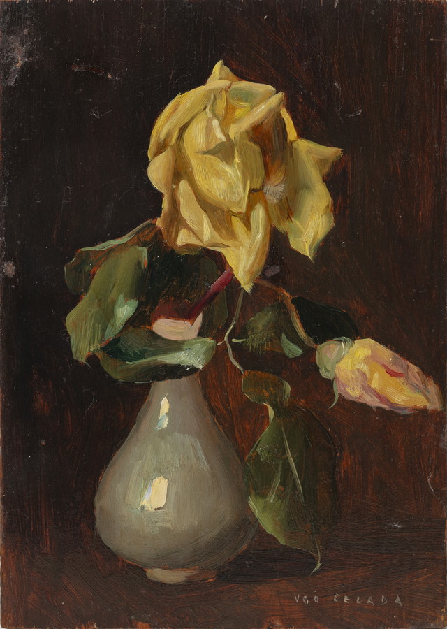 CELADA DA VIRGILIO UGO (1895 - 1995) VASO DI FIORI . Olio su tavola. Cm 17,20 x 24,60. firma