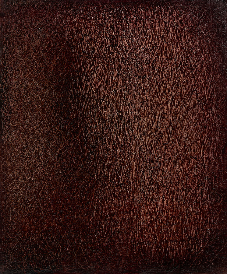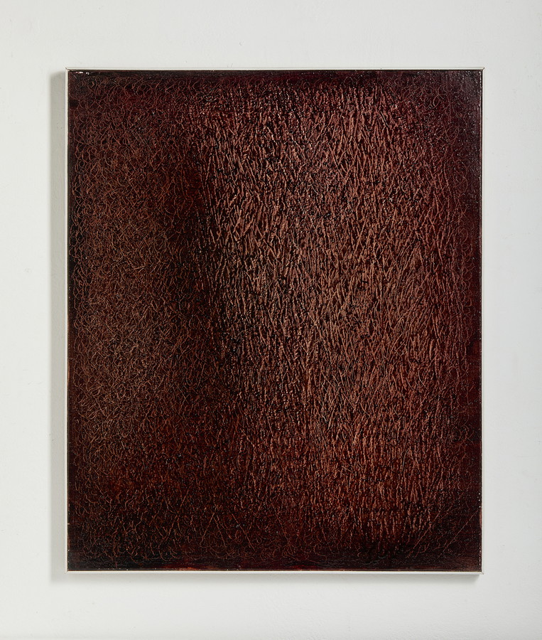DE LUIGI MARIO (1901 - 1978) SENZA TITOLO. 1973. Grattage su tela. Cm 50,50 x 60,50. sul retro: firma, data e dedica ad personam