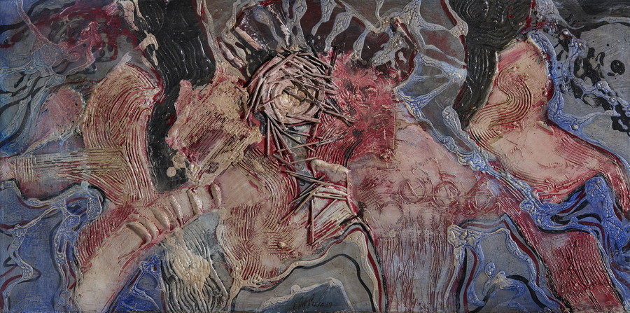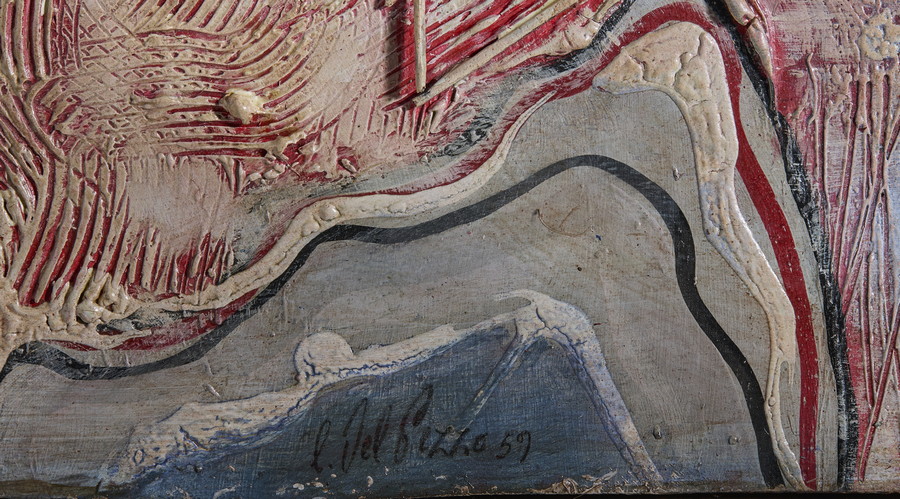 DEL PEZZO LUCIO (1933 - 2020) CORPO CELESTE DUE . 1959. Olio su tavola. Cm 79,50 x 39,00. firma