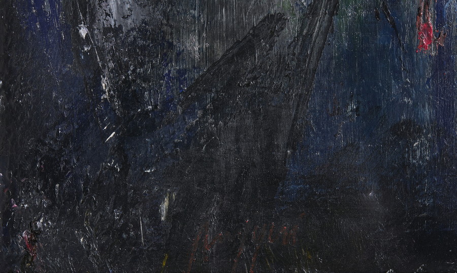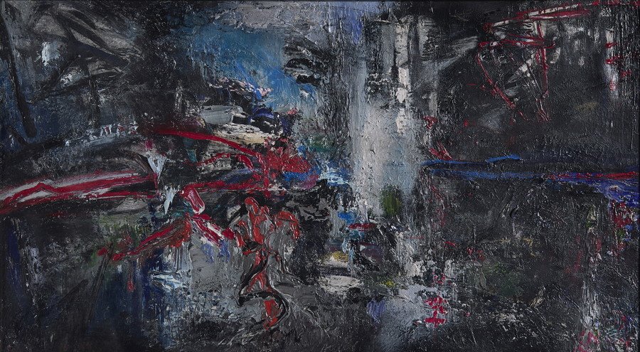 RUGGERI PIERO (1930 - 2009) INCENDIO . 1959. Olio su tela. Cm 79,50 x 44,50. firma