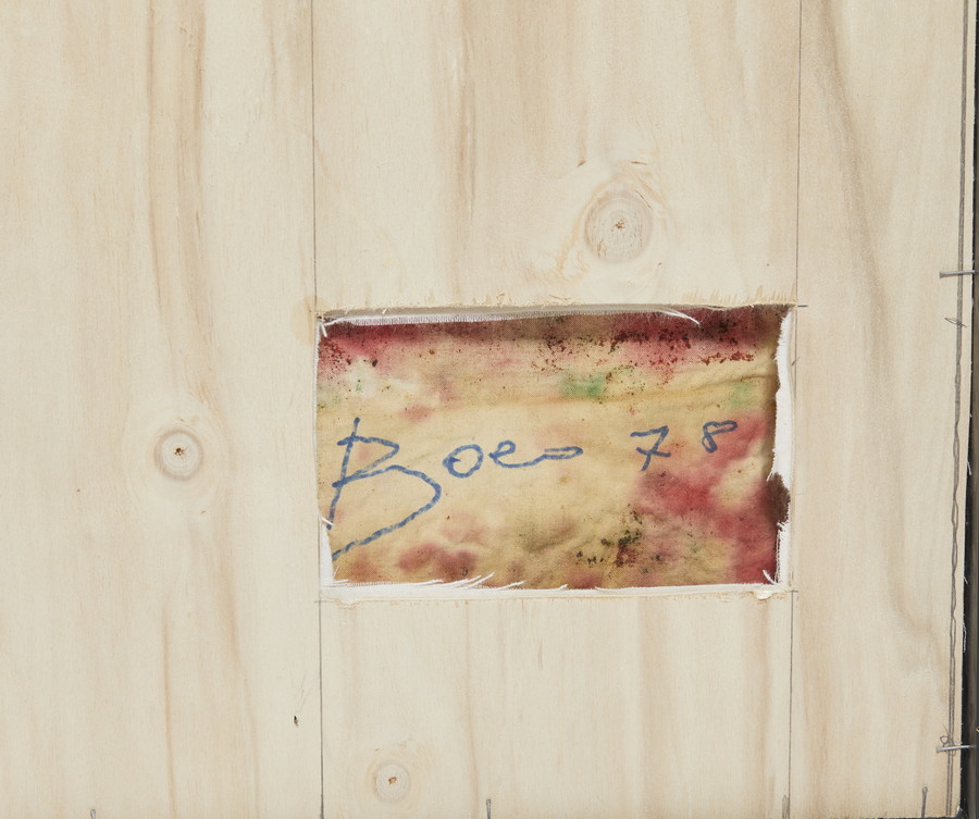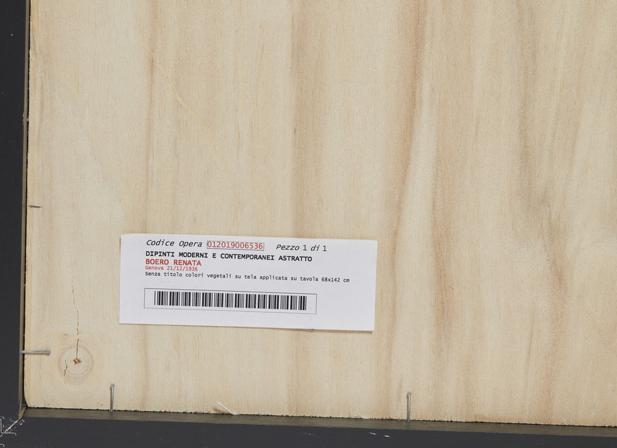 BOERO RENATA (n. 1936) SENZA TITOLO (CROMOGRAMMA). 1978. colori vegetali su tela applicata su tavola. Cm 68,00 x 142,00. sul retro: firma e data