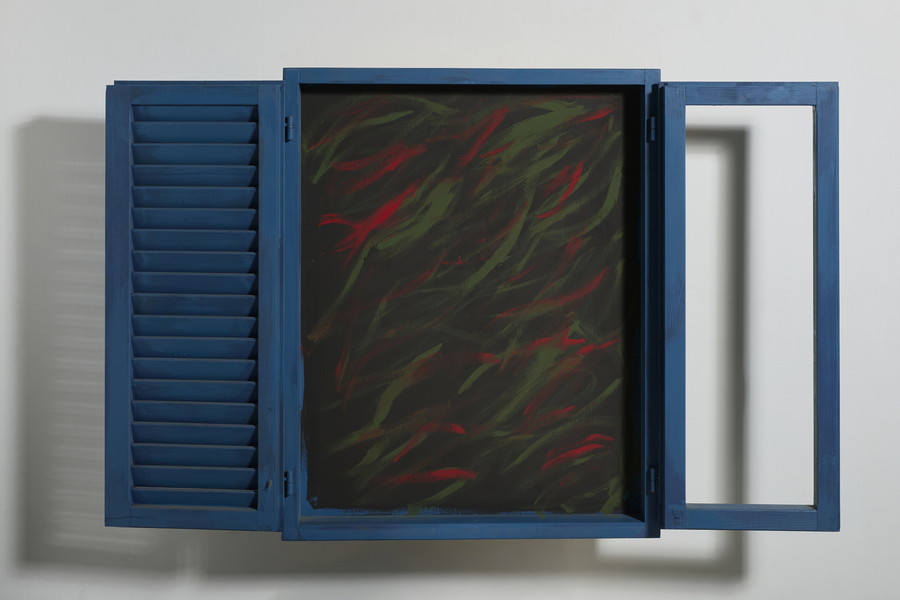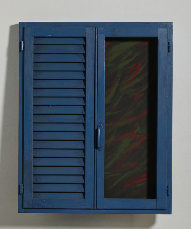 FESTA TANO (1938 - 1988) PERSIANA AZZURRA, ANNI '80. smalto e acrilico su tavola. Cm 80,00 x 100,00 x 9,00. sul retro: firma