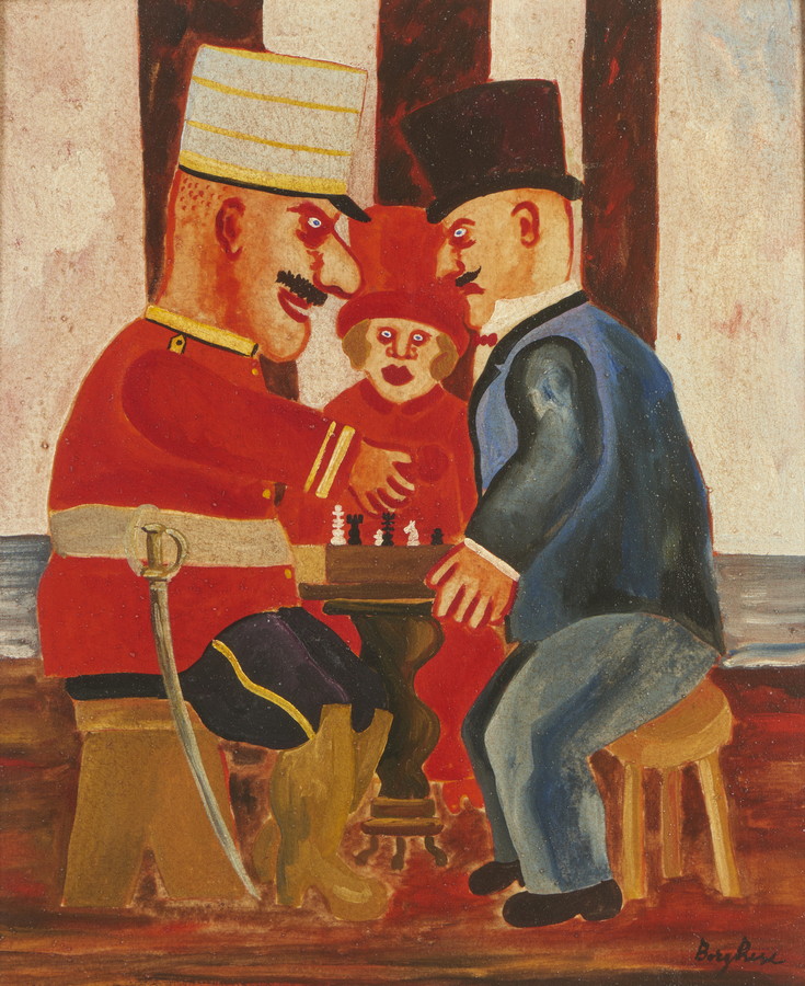 BORGHESE FRANZ (1941 - 2005) PARTITA A SCACCHI. Olio su tela. Cm 50,00 x 60,00. firma