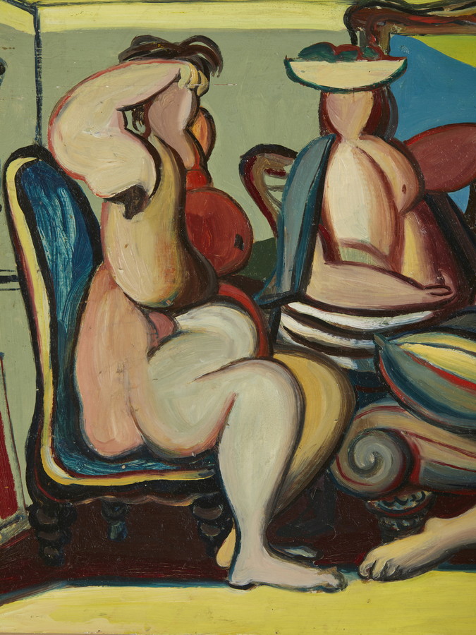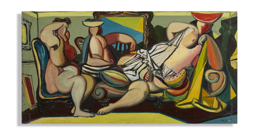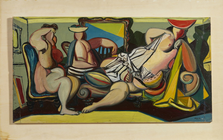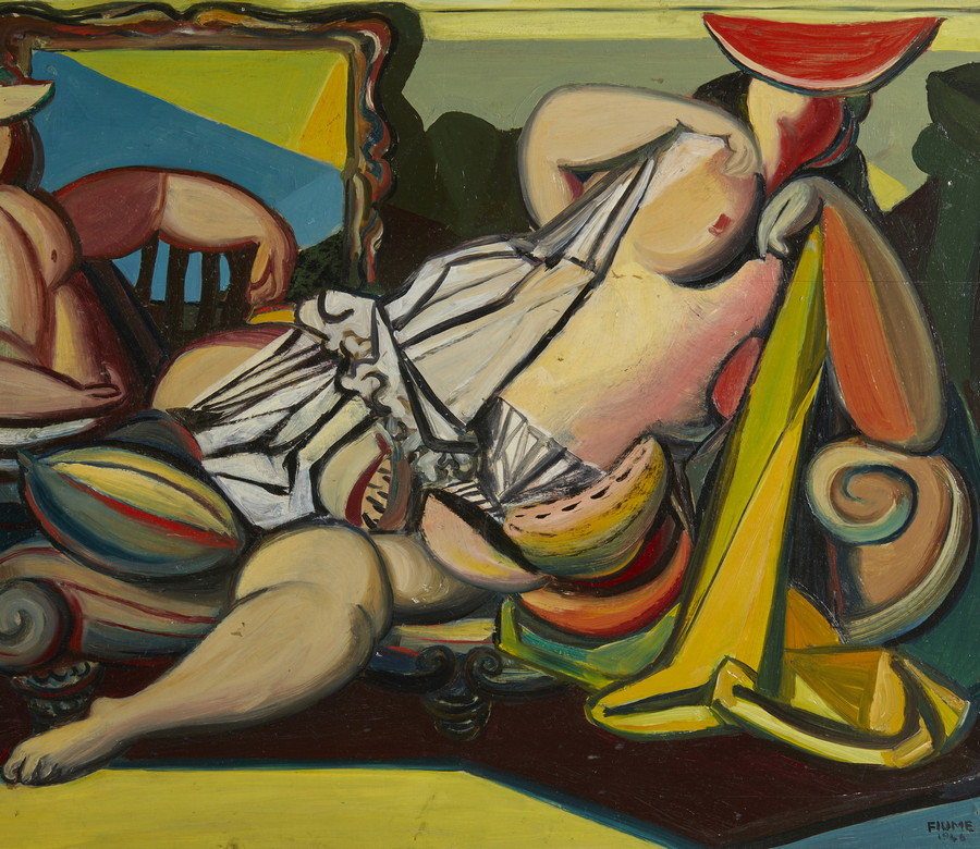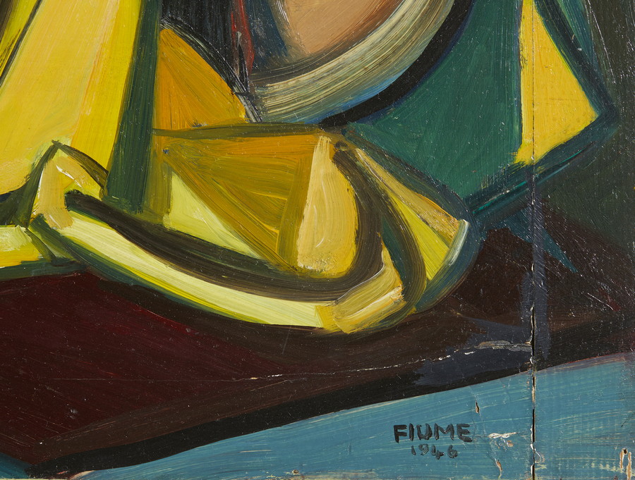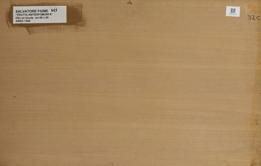 FIUME SALVATORE (1915 - 1997) FRUTTA ANTROPOMORFA. 1946. Olio su tavola. Cm 89,70 x 48,00. firma e data