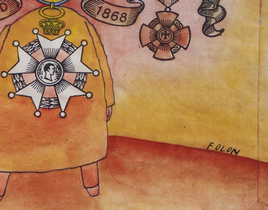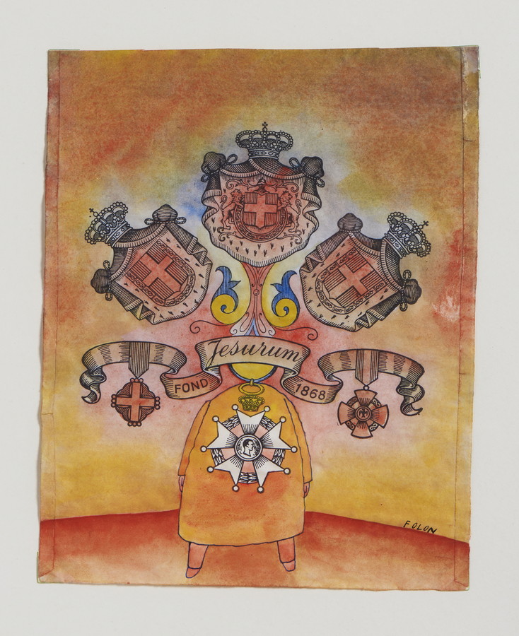FOLON JEAN-MICHEL (1934 - 2005) SENZA TITOLO (SACCHETTO PER FINISSIMI PIZZI DI JESURUM). China e acquarello su carta. Cm 17,20 x 21,30. firma
