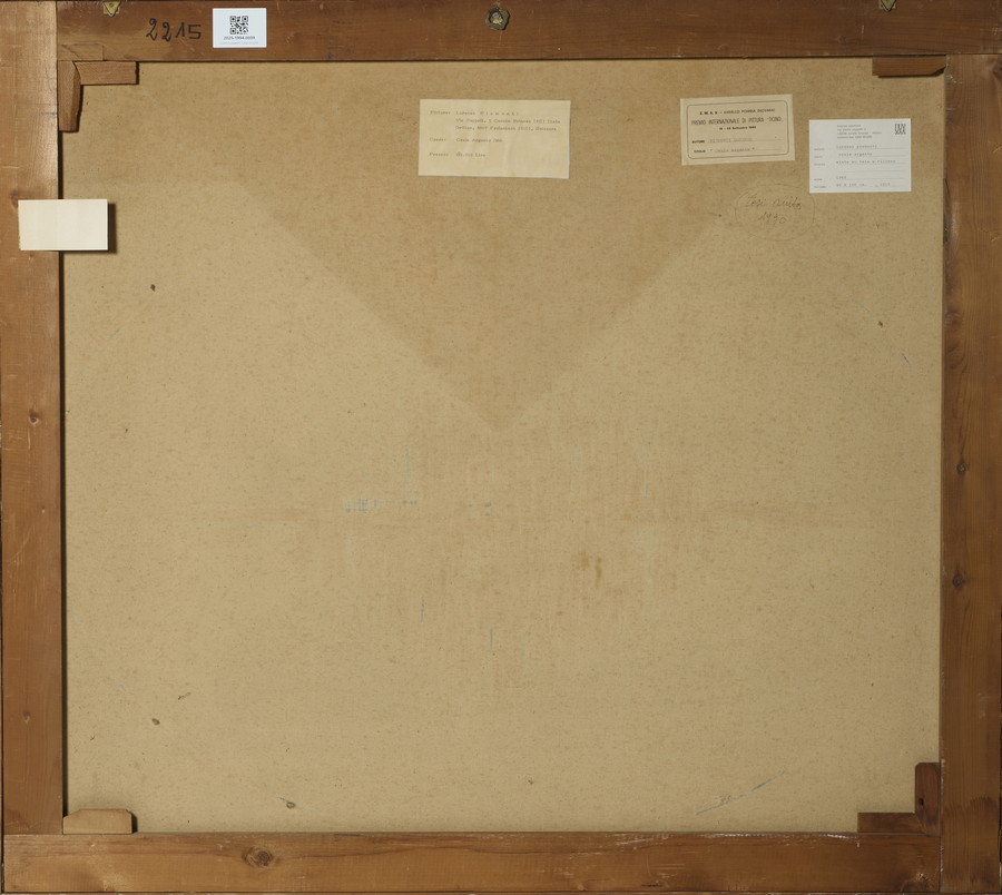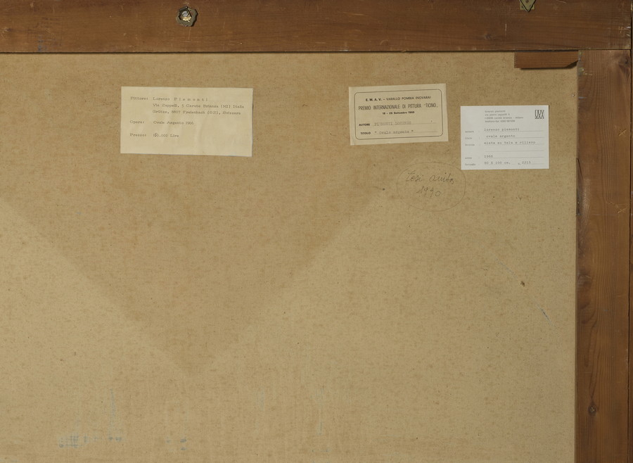 sul retro: etichetta dell'artista ed etichetta Premio Internazionale di pittura Ticino, 18 -29 Settembre 1966, Varallo Pombia (Novara)