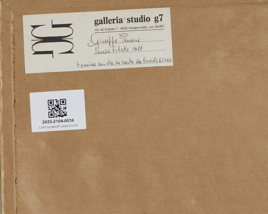 sul retro: etichetta di provenienza Galleria studio G7, Bologna