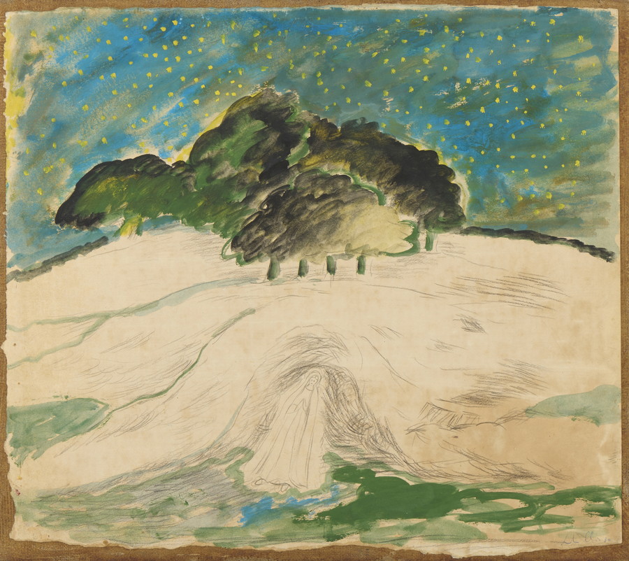 CHIA SANDRO (n. 1946) SENZA TITOLO. 1980. Tempera e matita su carta applicata su tela. Cm 41,50 x 37,00. firma e data
