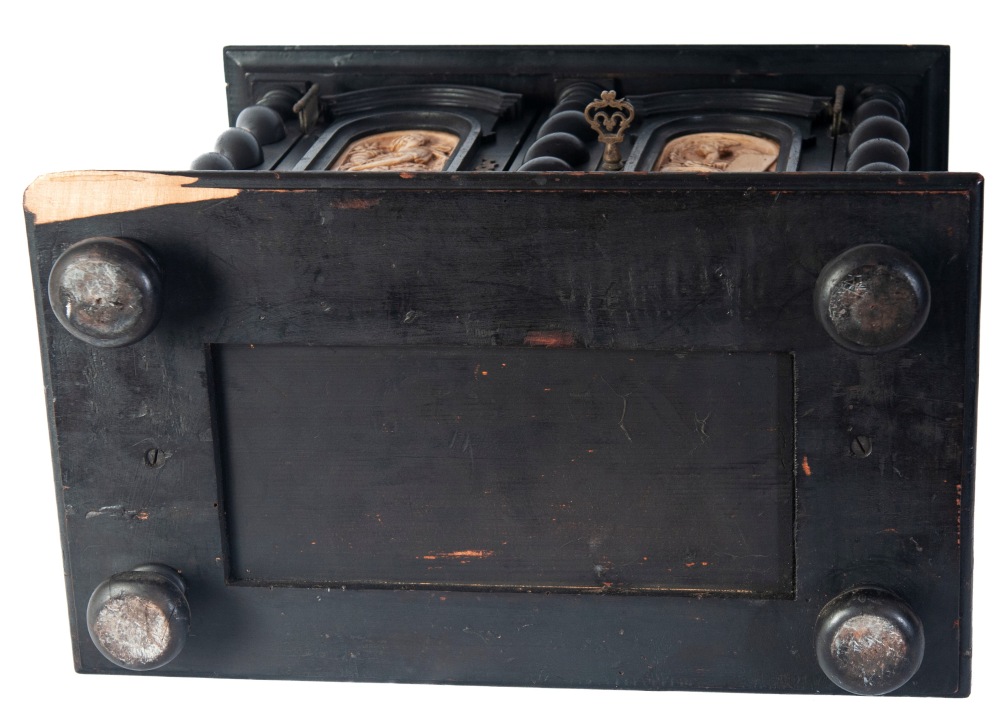 Secretaire a due sportelli in legno ebanizzato fine XIX secolo inizi XX secolo 34 x 40 x 23 cm