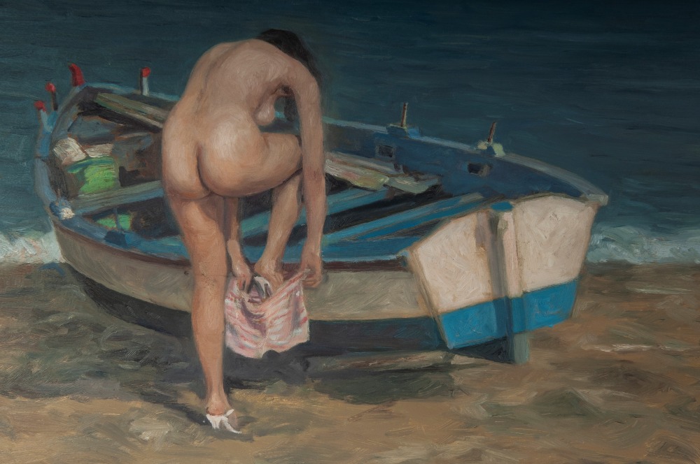 Nudo di donna XX secolo dipinto ad olio su tavola 50 x 70 cm