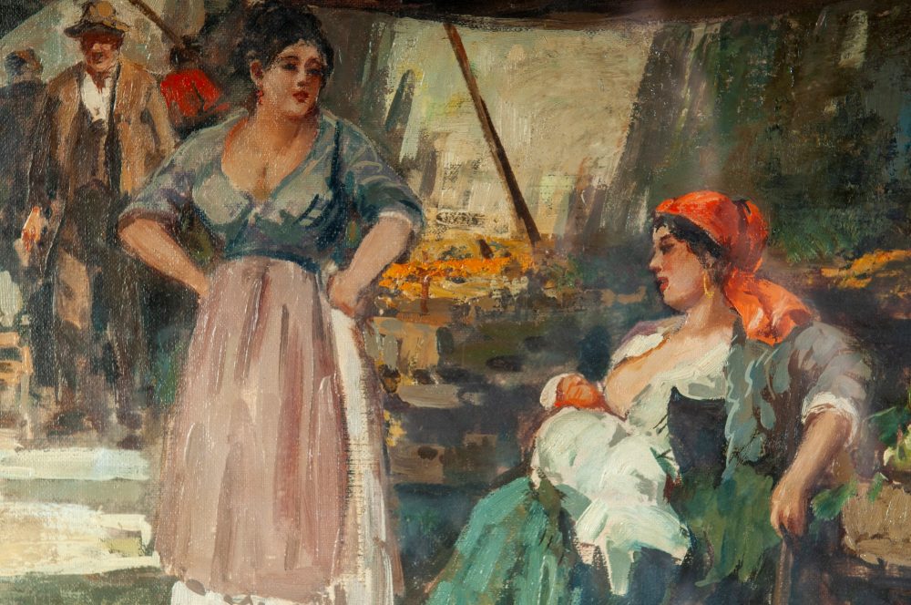 AL mercato XX secolo dipinto ad olio su tela 40 x 60 cm