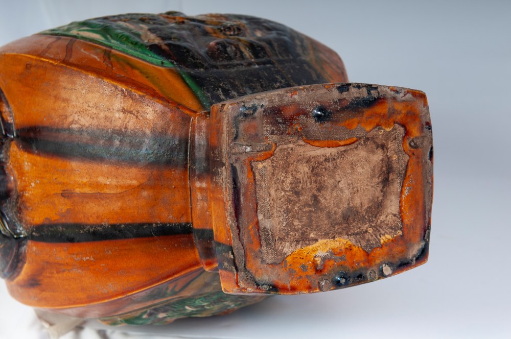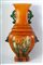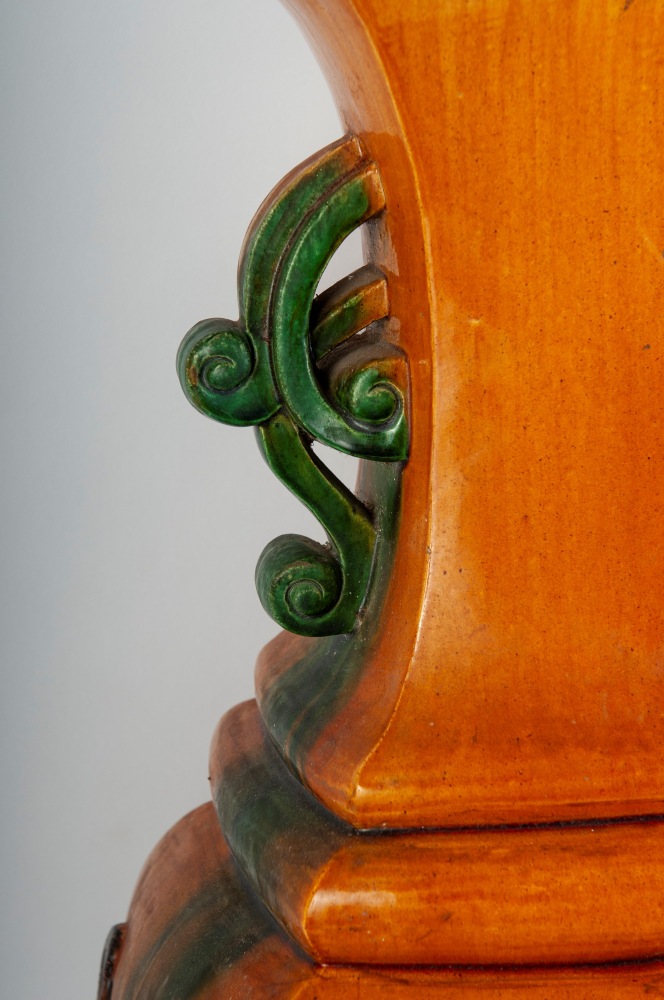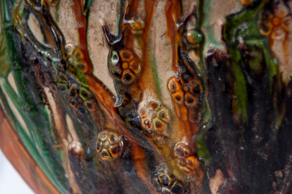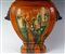 63 x 38 x 21 cm a tre colori, anse stilizzate a motivi vegetali con rilievi a testa di pipistrelli ed elementi floreali nel corpo.