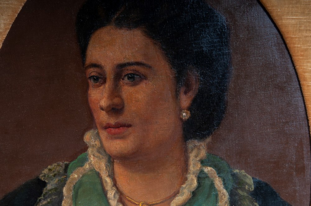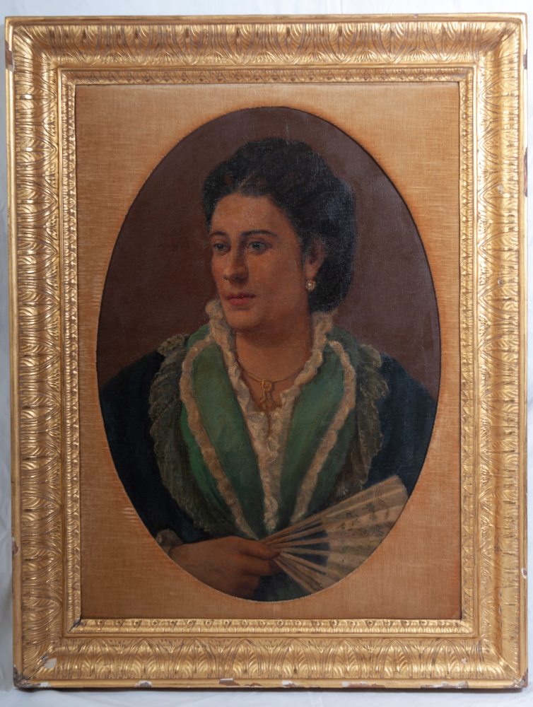 Busto di gentildonna fine XIX secolo inizi XX secolo dipinto ad olio su cartone ad assetto ovale 73 x 53 cm