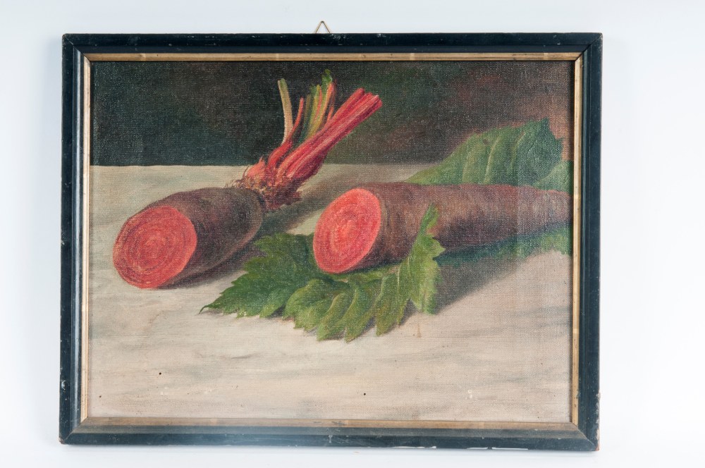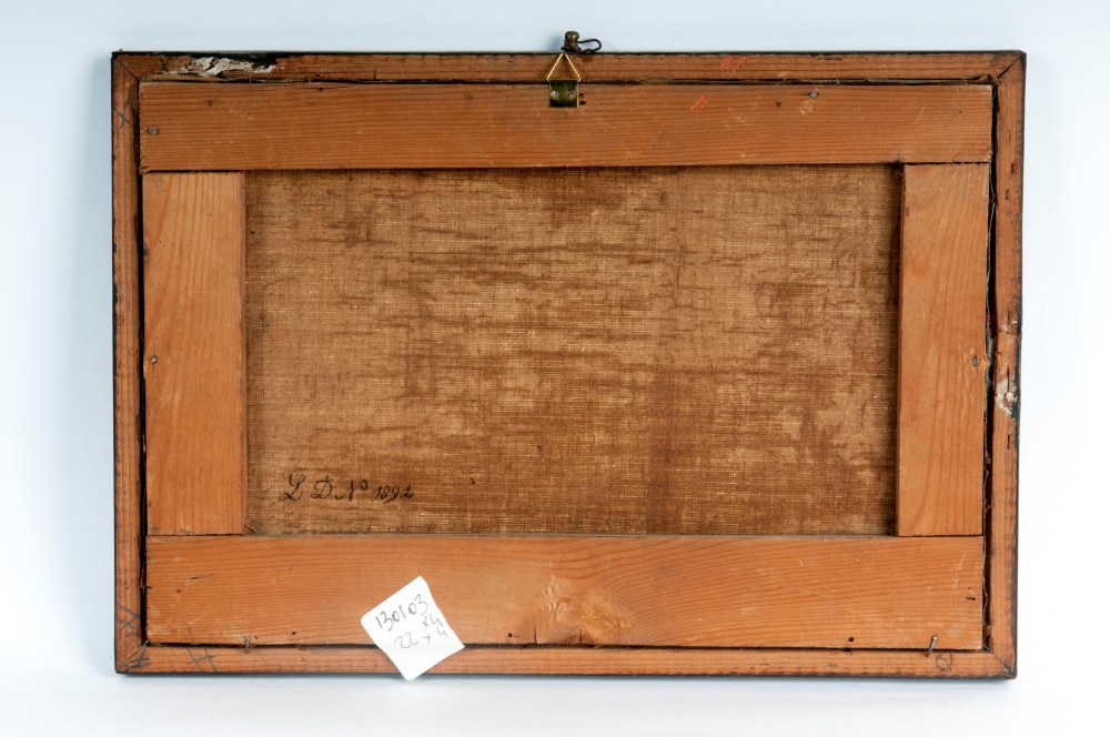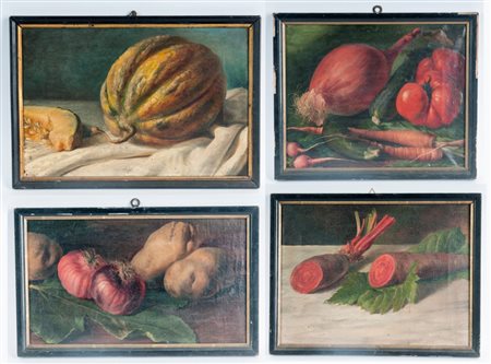 dipinti ad olio su tela 23,5 x 29 cm; 20 x 34 cm; 25 x 34 cm; 24 x 35,5 cm a soggetto di frutta ed ortaggi , siglati L.D.N. e datati al retro 1892/93