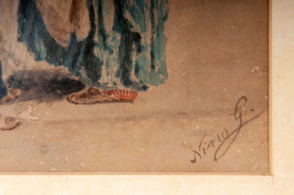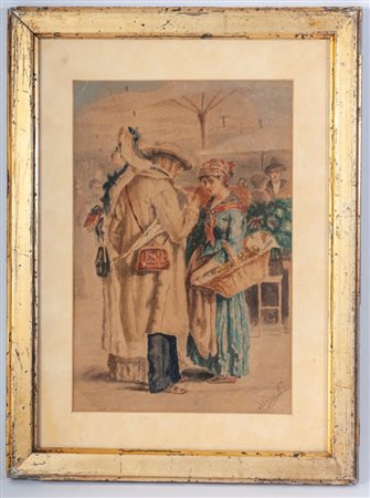 Al mercato prima metà XX secolo disegno acquarellato su carta 31 x 20 cm