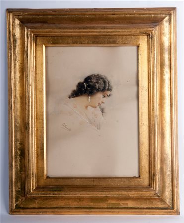 Busto femminile prima metà XX secolo Acquarello su carta 34,5 x 25 cm