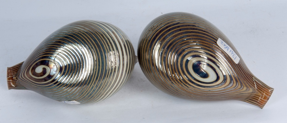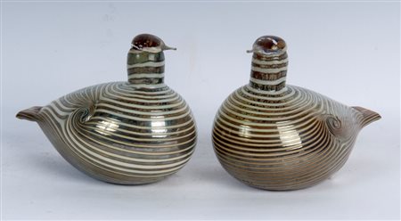 Toikka Oiva (1931 - 2019) Lotto di due anatre in vetro iridescente seconda metà XX secolo 13 x 18 cm