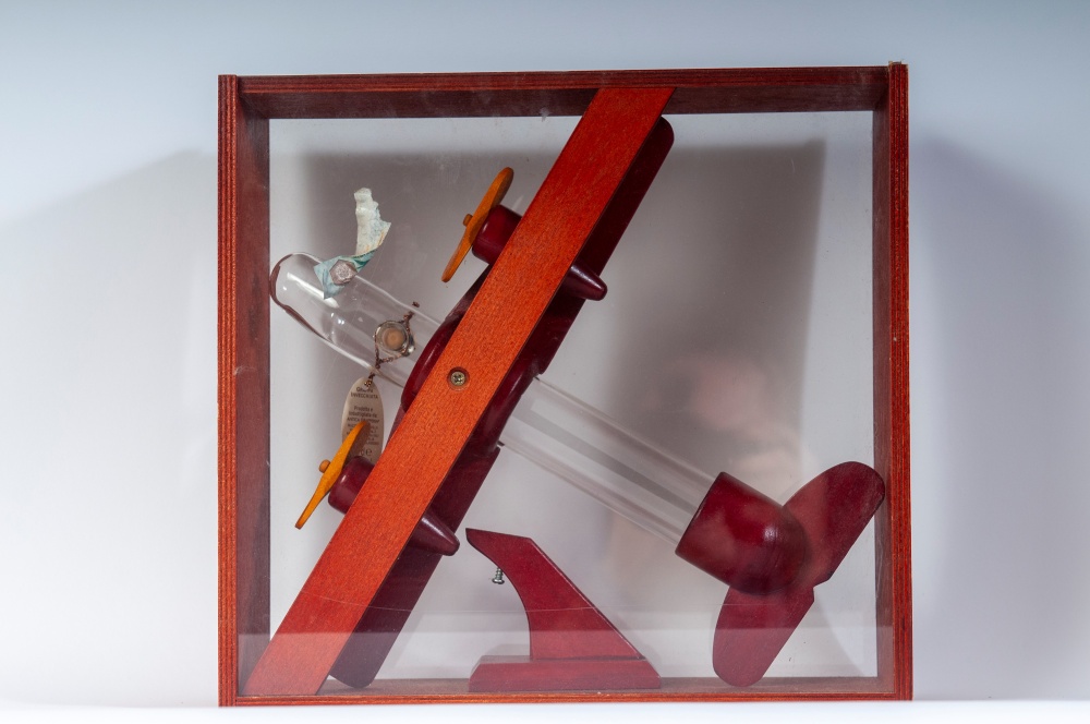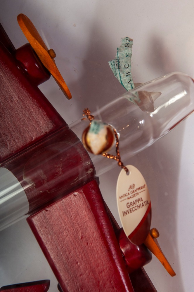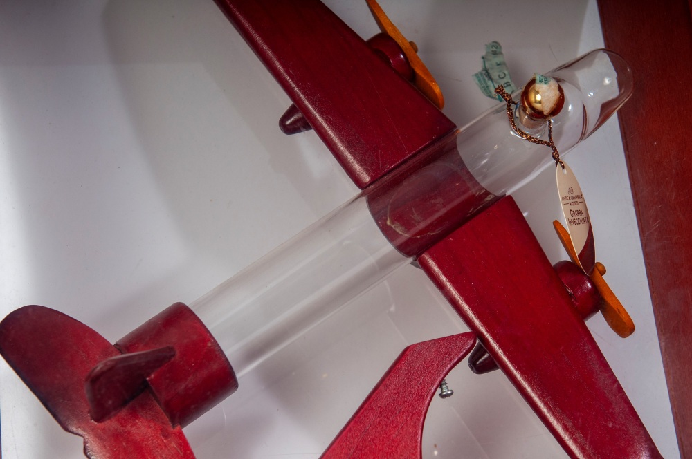 Bottiglia in vetro a forma aeroplano seconda metà XX secolo