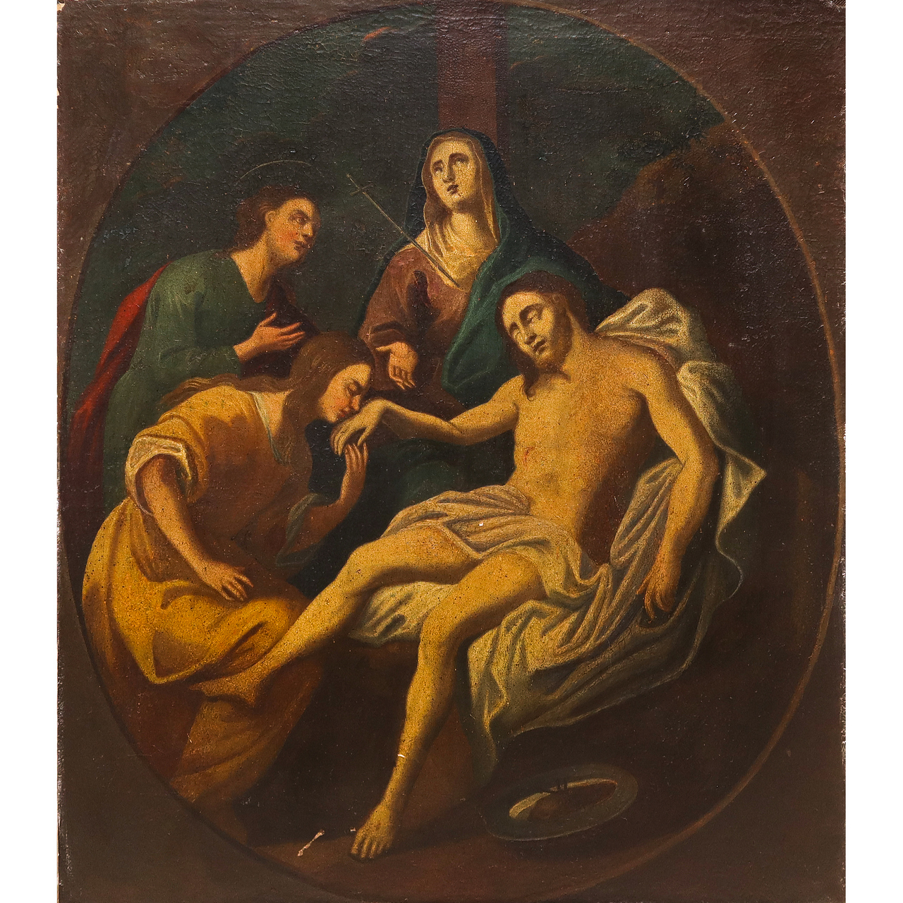 Compianto sul Cristo morto, Fine 18° secolo h cm 72x62 in cornice h cm 92x82 Olio su tela