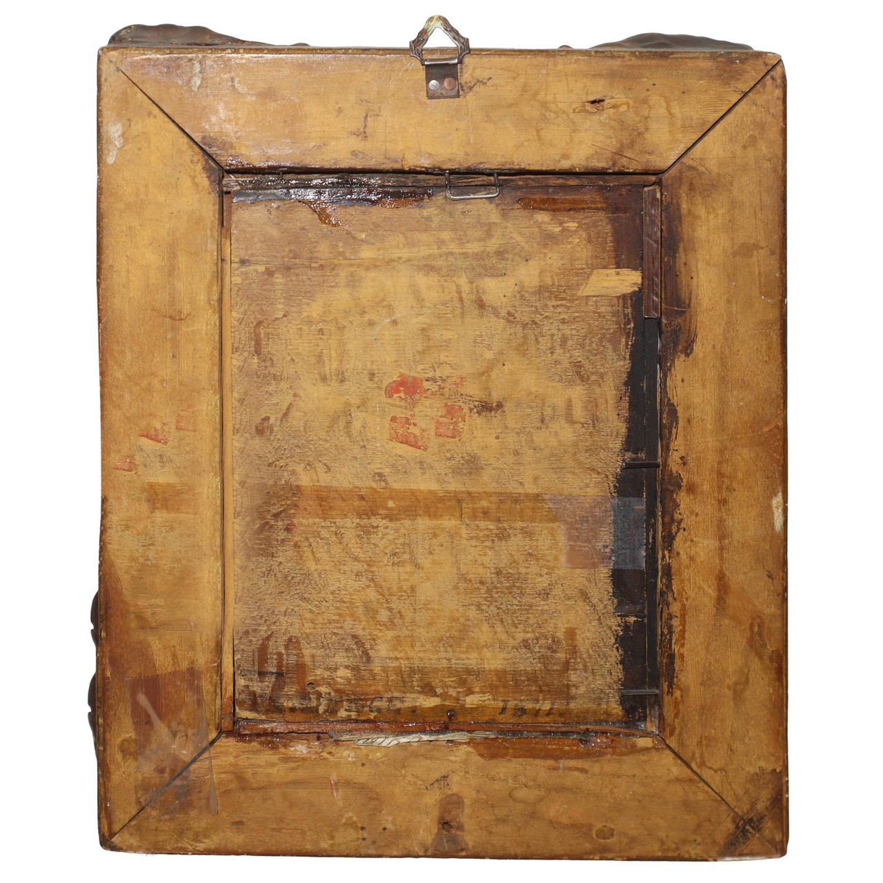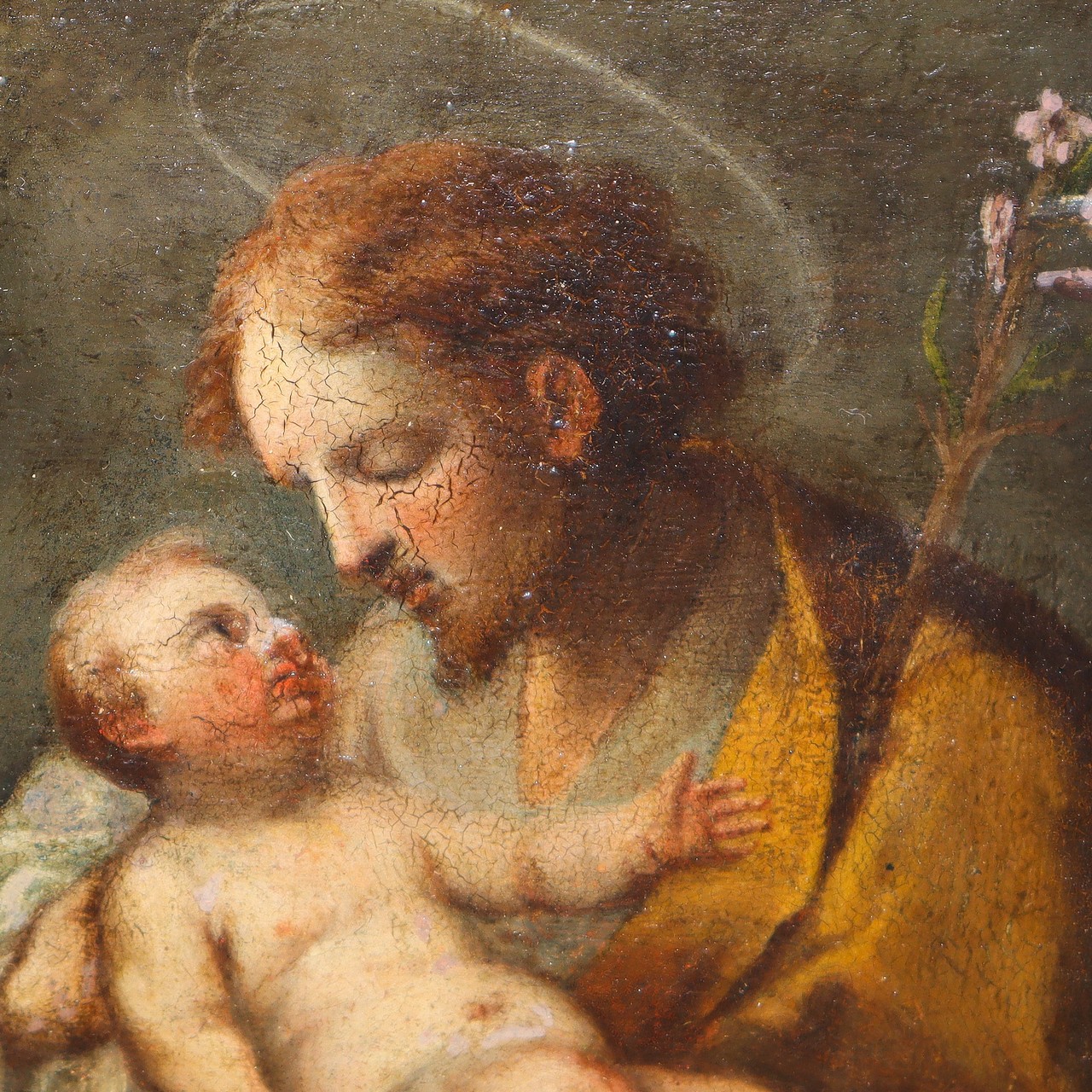 S.Giuseppe con bambino, Fine 17° secolo H 13,5x10,5 , in cornice postuma H cm 22,5x18 Olio su tavola
