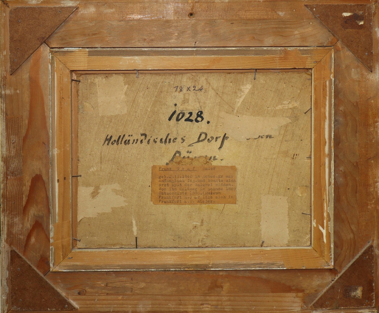 Franz Graf (1840 - 1916) - Paesaggio rurale con case e personaggi , 1866 18x24 in cornice cm 33x39 Olio su tavola