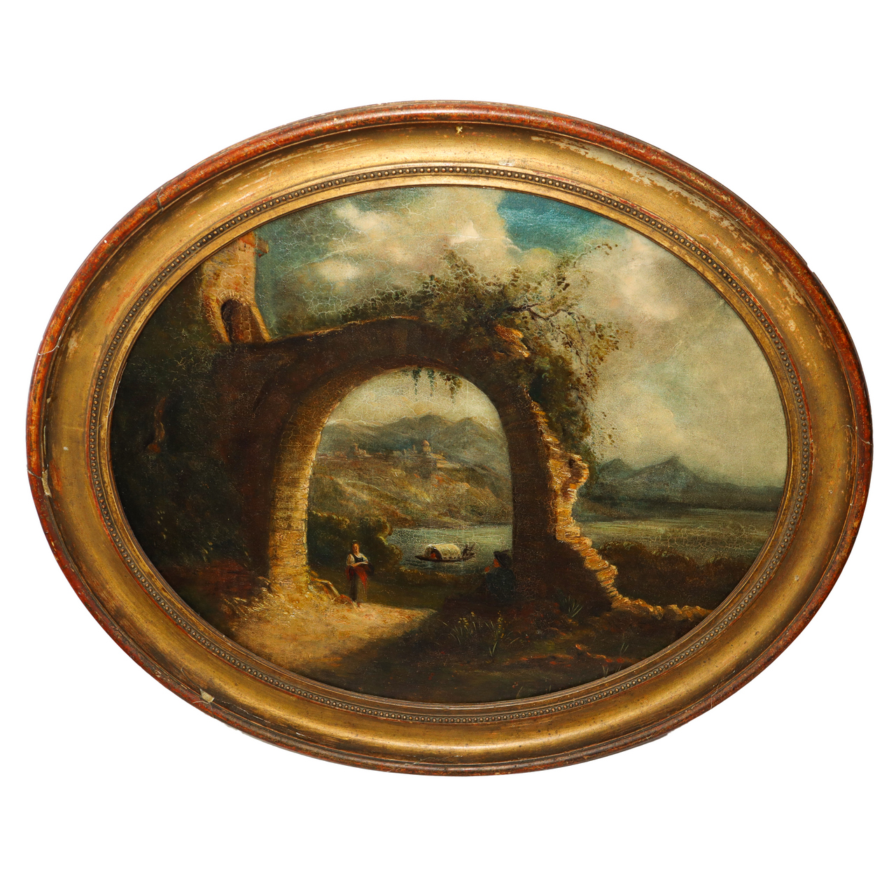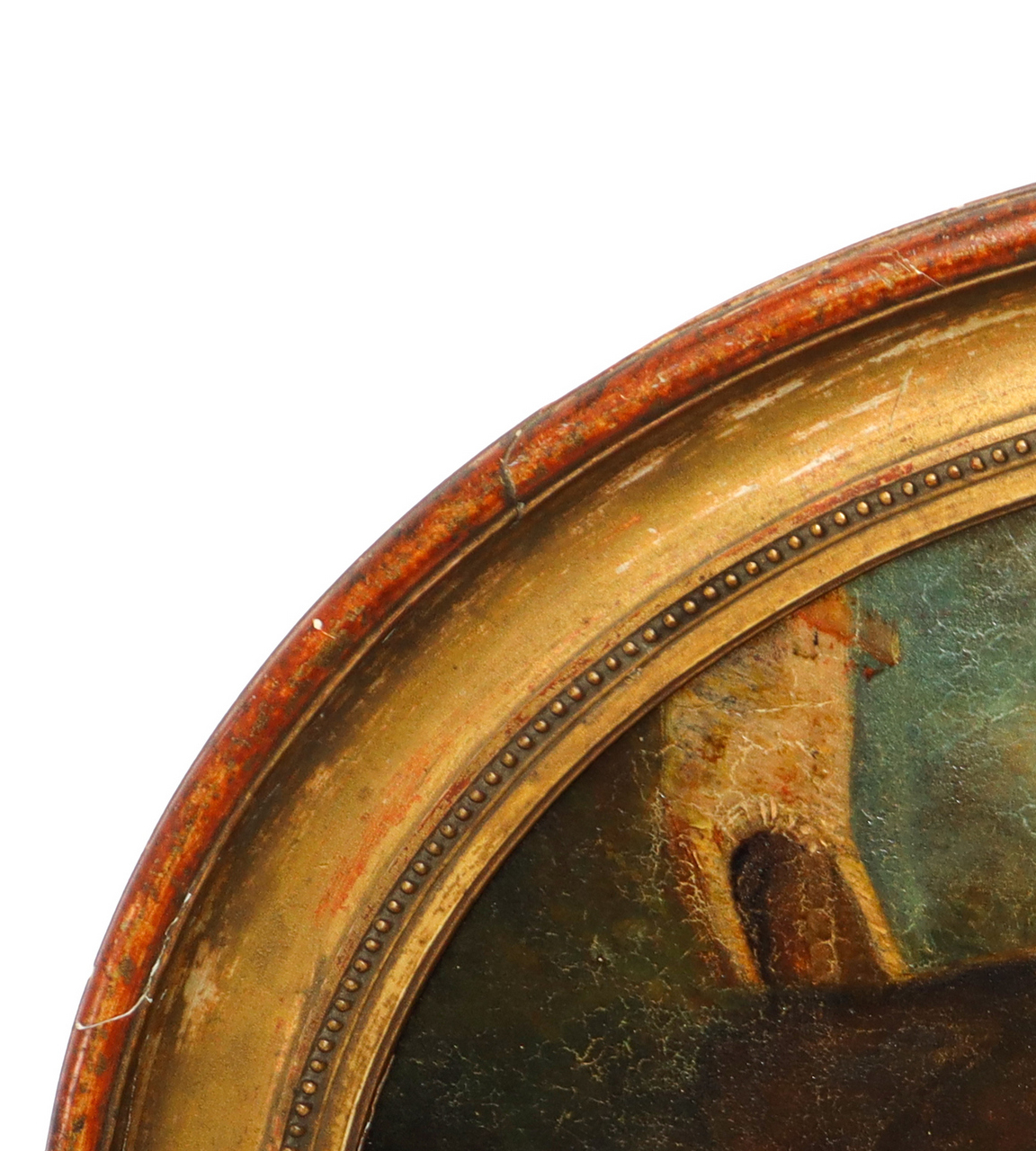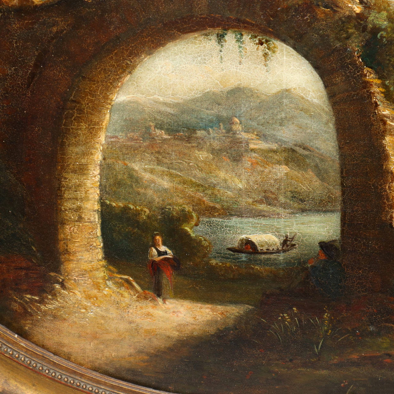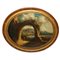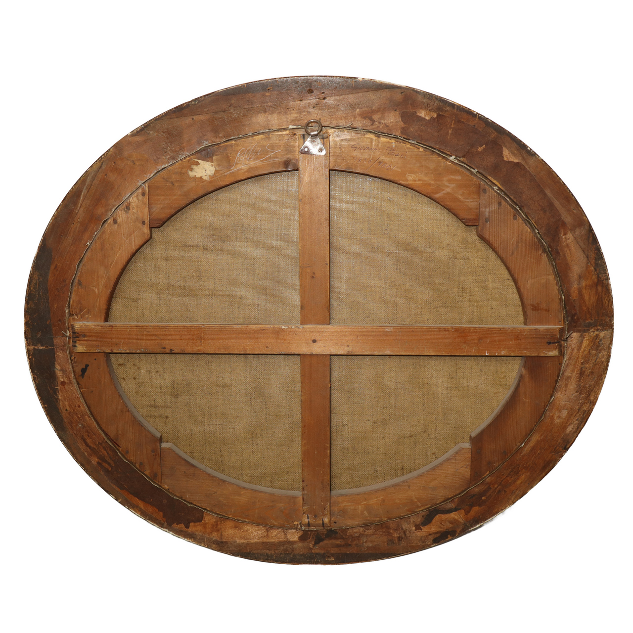 Giovanni Polli (1826 - 1861) - Paesaggio lacustre con barca, 19° secolo h cm 50X61 in cornice h cm 62X73 olio su tela ovale